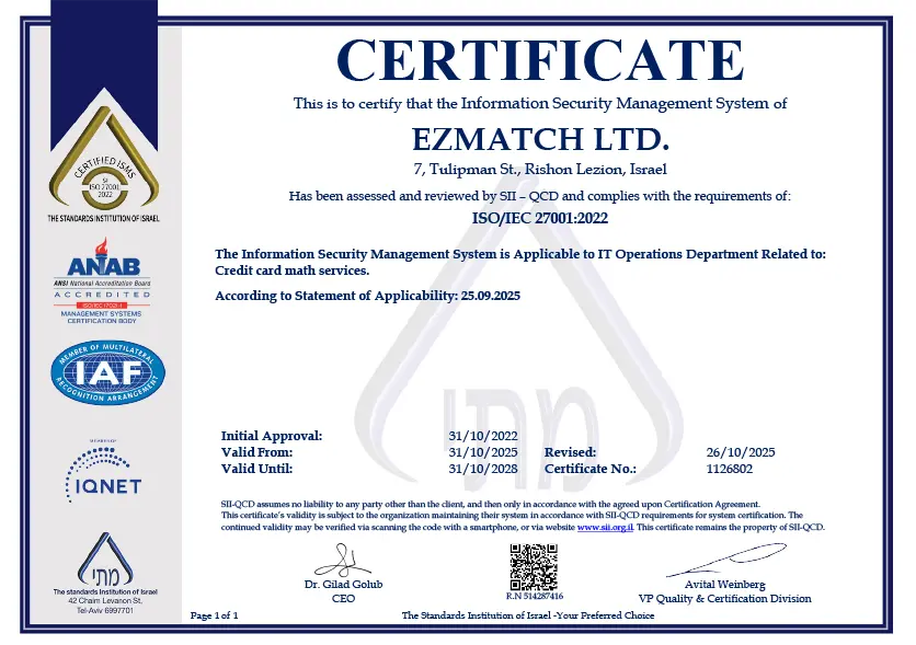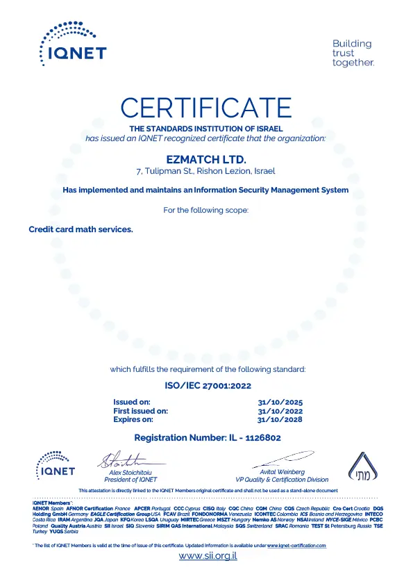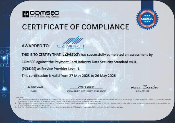 איזימץ' מוסמכת לתקן האבטחה הגבוה ביותר בשוק כרטיסי האשראי.